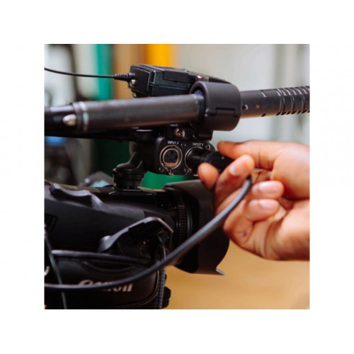 Entrée audio : Jack XLR 3 broches (x2) avec alimentation fantôme 48 V, options de ligne et micro sur poignée amovible,